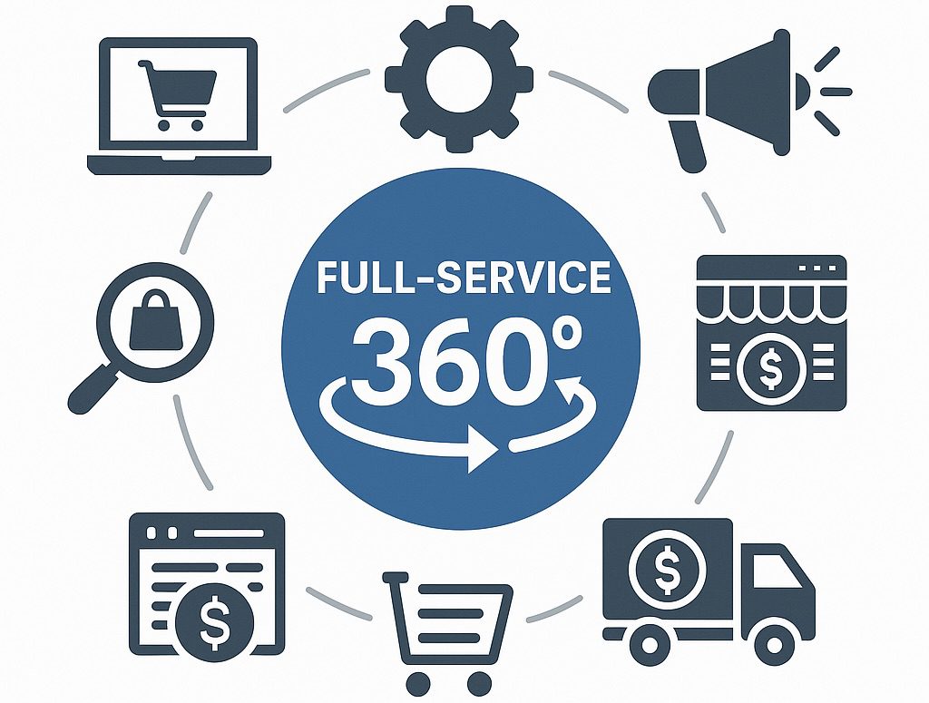 Wir als Full-Service Agentur begleiten Dich von A bis Z: von der Strategieentwicklung über Shop- und Marktplatzoptimierung bis hin zu Performance-Marketing, Design und internationaler Expansion. Wir kümmern uns um das Marktplatz-SEO, Software-Setup, Logistik + Fulfillment, Steuern und laufende Kampagnenoptimierung – damit Du dich ganz auf das Wachstum Deine Unternehmens konzentrieren kannst.